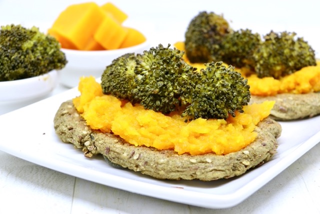 - Spalma la crema di zucca sulle bruschette cotte e disponi i broccoletti cotti al forno.