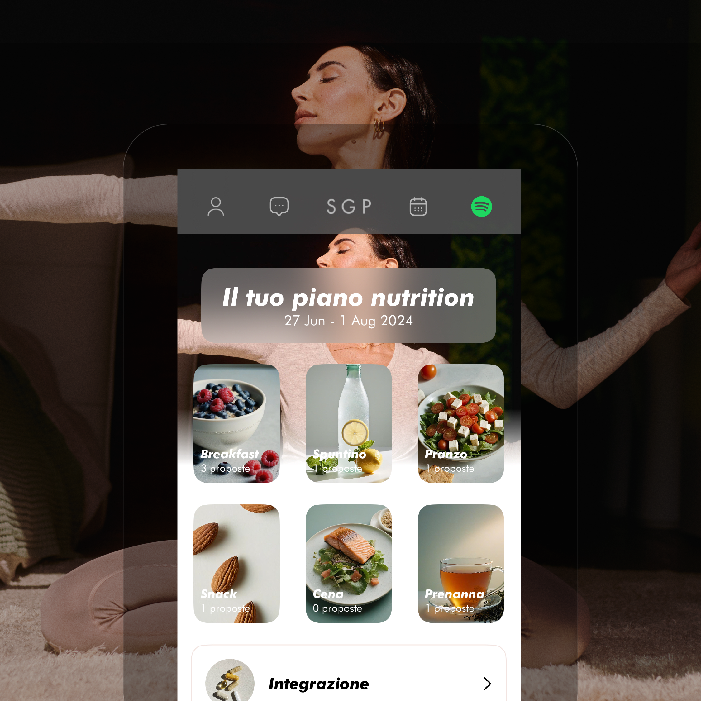 SGPnutrition è un percorso alimentare completamente personalizzato: verrai seguita da una biologa nutrizionista del mio Team. La tua nutrizionista non ti darà una dieta da seguire alla lettera: insieme farete un percorso mirato a raggiungere il tuo obiettivo e a fornirti un’educazione alimentare che entri a far parte del tuo bagaglio personale. Con SGPnutrition adotterai delle abitudini sane, che ti porteranno a diventare autonoma nelle tue scelte, ovunque tu sia.