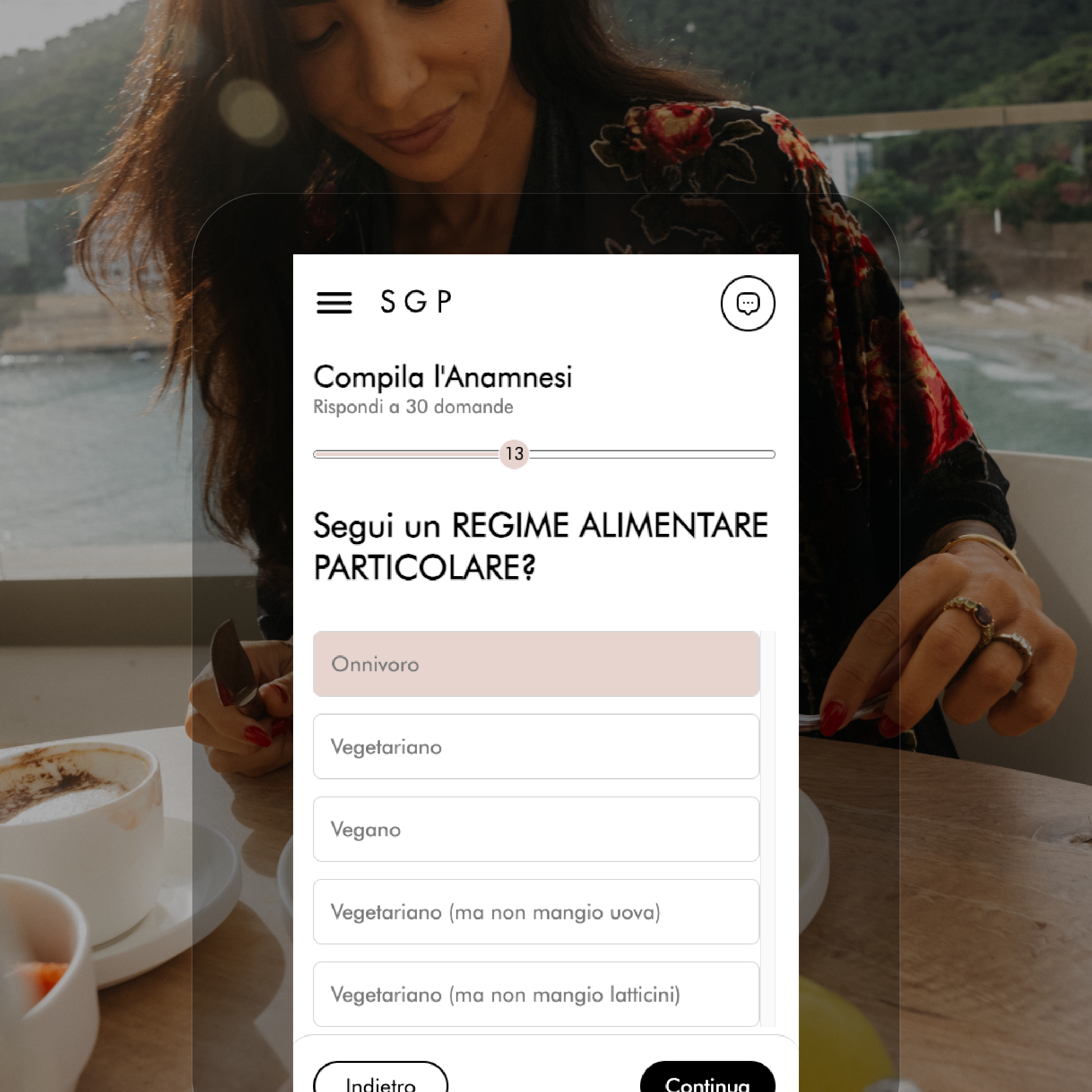 All’inizio del tuo percorso compilerai la tua anamnesi attraverso un questionario guidato. Questo permetterà alla tua nutrizionista di realizzare un piano alimentare cucito sulle tue esigenze e a te di cominciare a prendere consapevolezza delle tue abitudini e del tuo corpo.